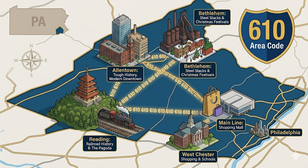 The 610 area code also has a lot of “Star Power.” Many famous athletes and actors grew up in the towns covered by this code. From the steel mills of the past to the high-tech hospitals of today, this area has always been a leader in innovation. Whether it’s the colorful Crayola Factory in Easton or the historic battlefields near Valley Forge, there is always something interesting happening in the 610 zone.